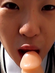 Rina Koda Asian strokes and sucks tools and has assets caressed